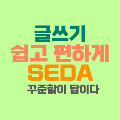 글쓰기 쉽고 편하게 SEDA 꾸준함이 답이다에 대해 적었던 글 이만 마치겠습니다. 여러분들의 글쓰기를 응원합니다. 화이팅!