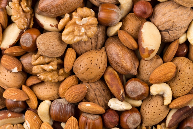 견과류와 씨앗은 튼튼한 지방, 섬유질, 그리고 단백질의 좋은 공급원이라고 합니다. 아몬드, 호두, 아마씨 한 움큼을 매일 먹는 것은 콜레스테롤 수치를 감소시키고 뇌졸중의 위험을 감소하는데 지원이 가능할 수 있습니다. 호두, 아몬드, 캐슈너트, 땅콩 등은 혈압제어과 혈액순환 개선에 효과적입니다.