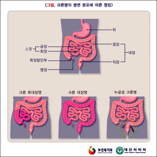 크론병과 같은 비 특이적 염증성 장질환에 속하는 것으로 궤양성 대장염이 있습니다. 크론병은 구강에서 항문까지 소화관의 어느 부위에나 염증이 발생할 수 있는 것을 말하고 궤양성 대장염은 염증 부위가 대장에 국한되어 있는 것이 특징으로 말할 수 있습니다.