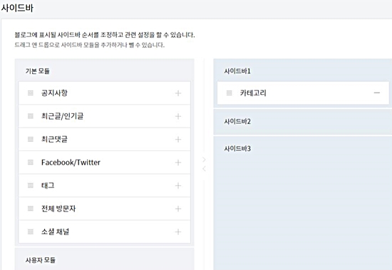 그러면 빼기 버튼을 누른 모듈들은 왼쪽으로 모두 이동된 것을 확인하실 수 있습니다.