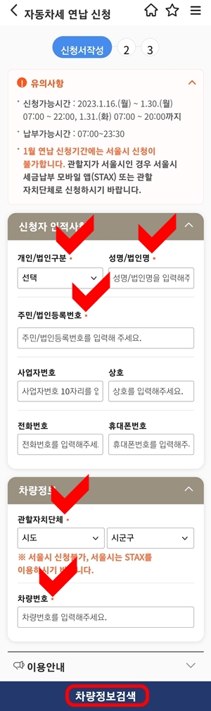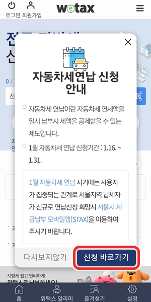 저는 위택스 앱을 깔고 모바일로 연납 신청을 하고 납부까지 했습니다.